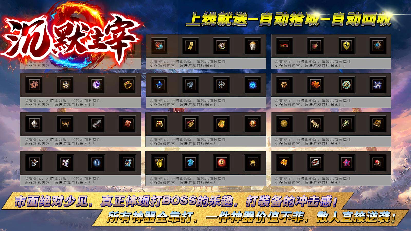 - 野外挂机:当玩家离线后,系统会自动进入挂机状态。在挂机状态下,玩家可以通过野外自动挂机捡取装备和经验。这是一种轻松获得装备的方式,但需要注意的是,背包满了就不会再自动捡取装备了。